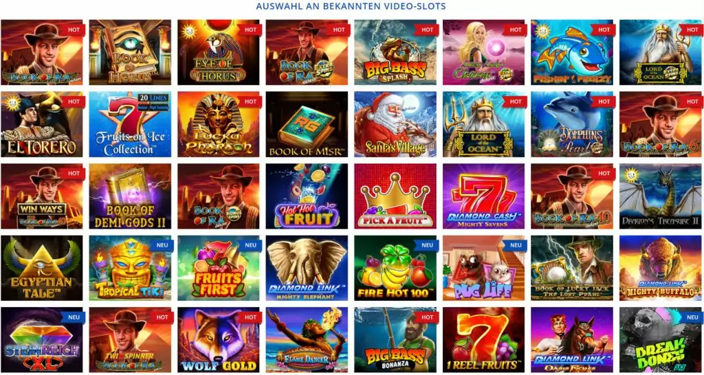 • Slots: Von klassischen Früchte-Slots bis zu modernen Video-Slots mit spannenden Features.